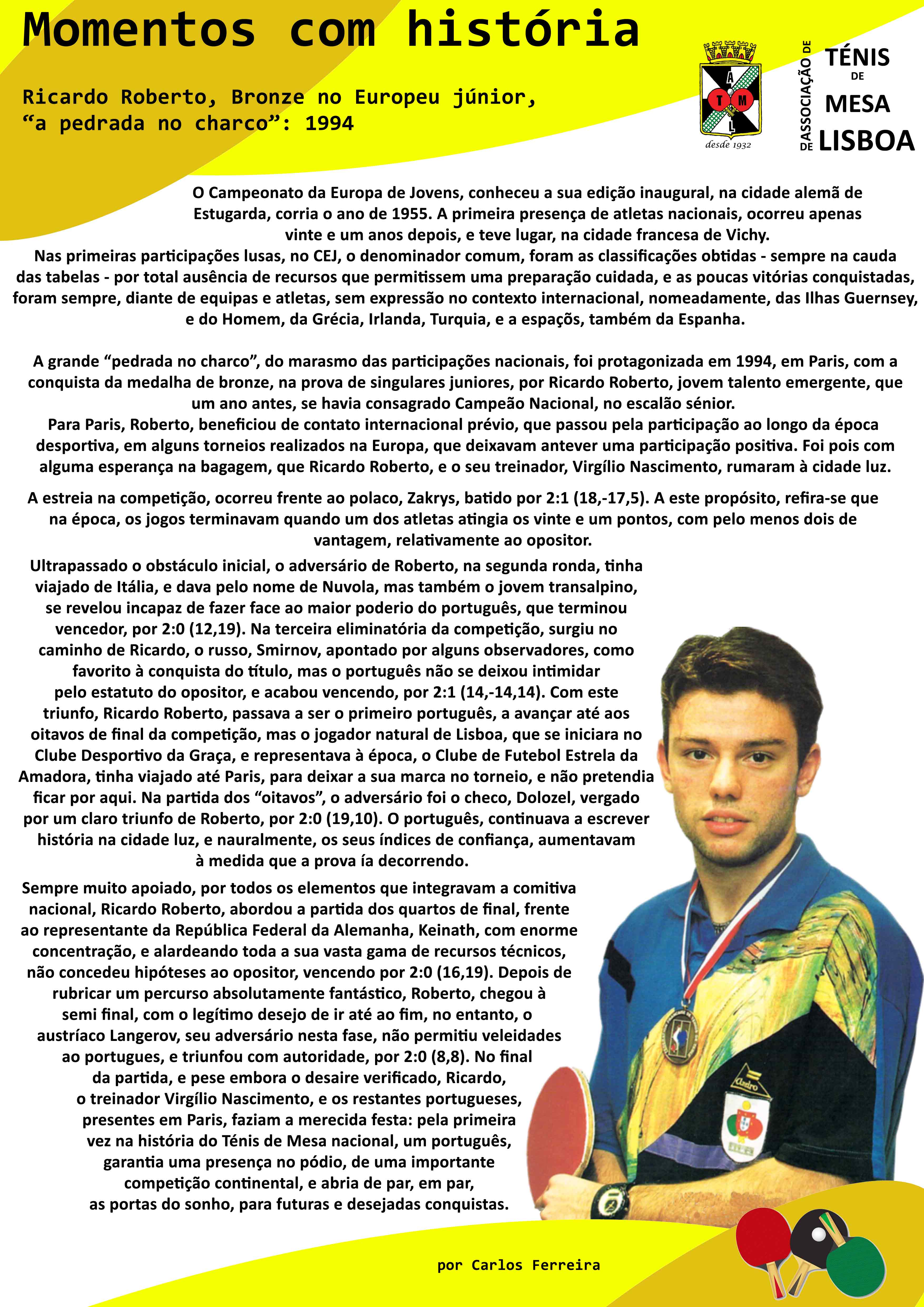 Ricardo Roberto. Bronze no Europeu júnior, "a pedrada no charco": 1994