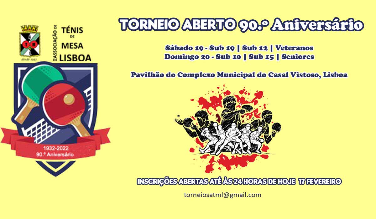 Ler mais: Torneio do 90.º Aniversário da ATM Lisboa: durante o dia de hoje, inscrições ainda abertas